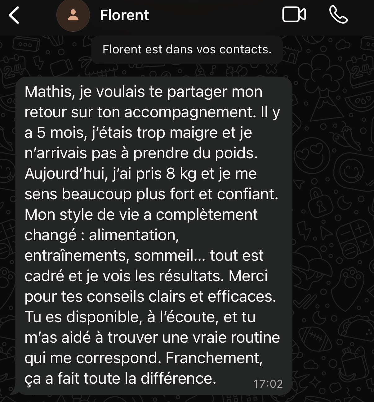 Je ne vends pas de miracle. Mais si tu fais le taf avec régularité, tu peux t’attendre à une vraie transformation en 3 mois.